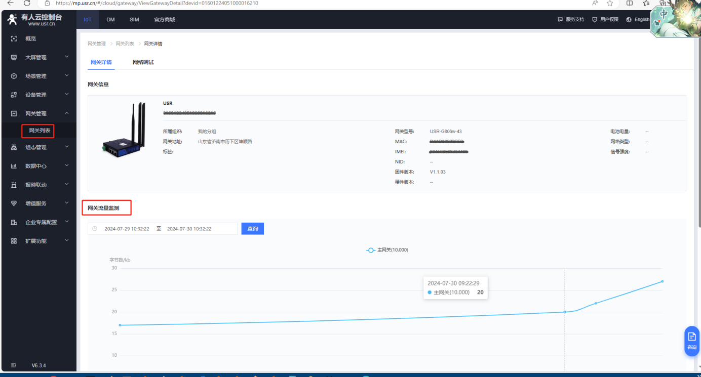 IOT平臺(tái),點(diǎn)擊網(wǎng)關(guān)管理,點(diǎn)擊網(wǎng)關(guān)列表,可以從網(wǎng)關(guān)流量監(jiān)測(cè),檢測(cè)流量。