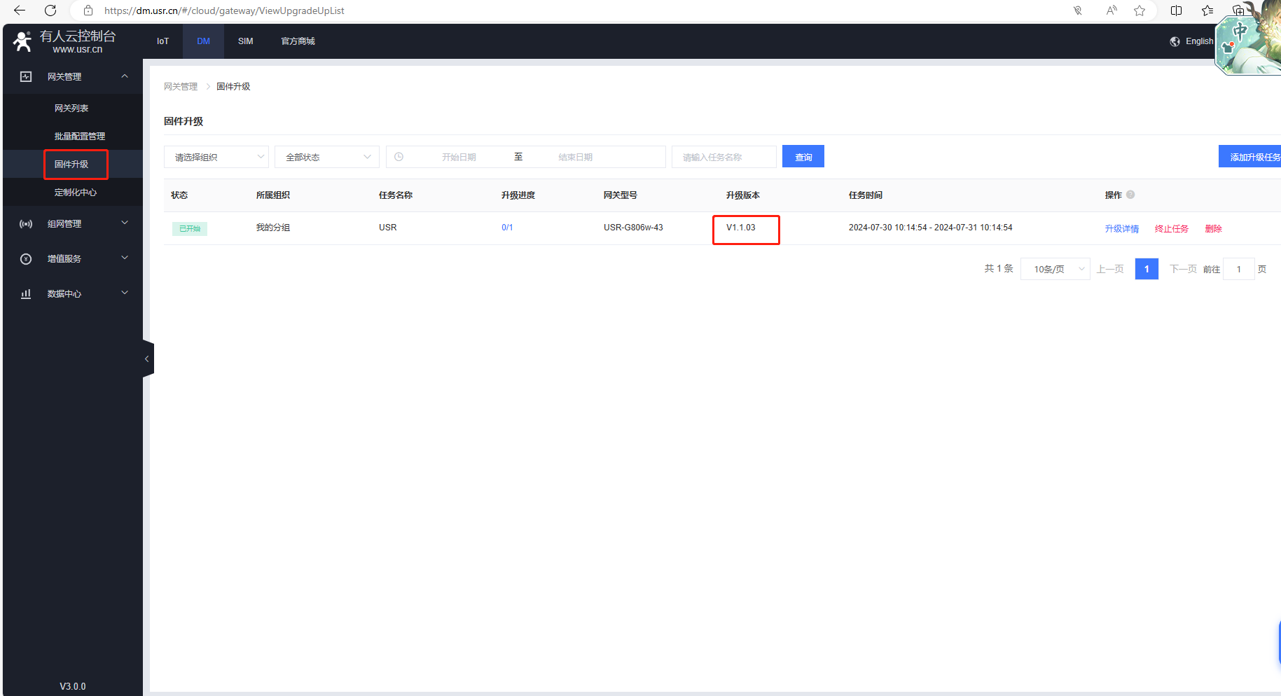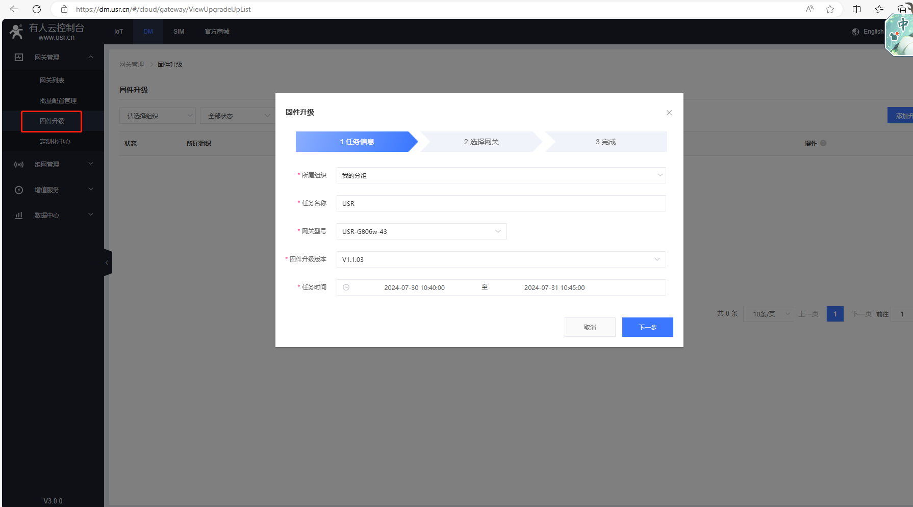 9、DM平臺(tái),點(diǎn)擊網(wǎng)關(guān)列表,點(diǎn)擊固件升級(jí)步驟頁面