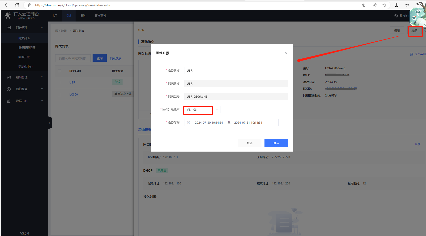 8、DM平臺(tái),點(diǎn)擊更多,固件升級(jí)