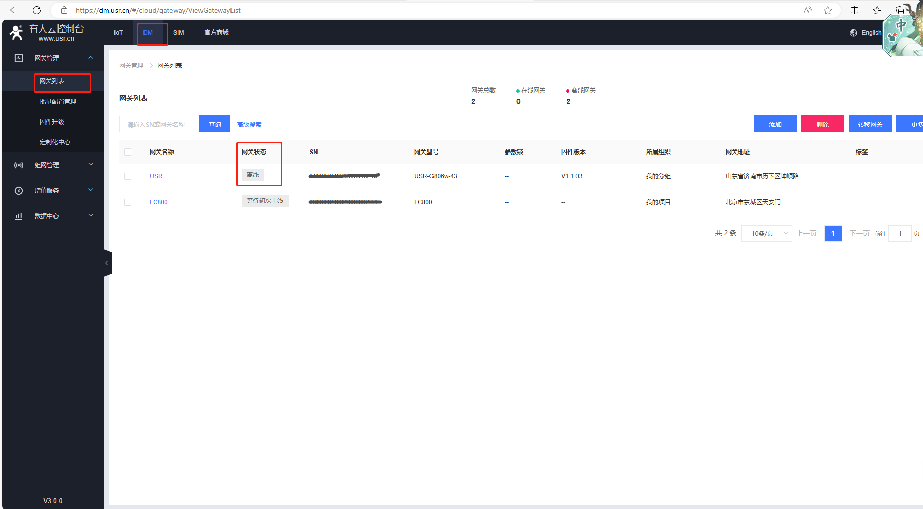 (2)支持SN上云的路由器產(chǎn)品,可以用產(chǎn)品標(biāo)簽上的SN和IMEI,添加網(wǎng)關(guān),點(diǎn)擊保存。