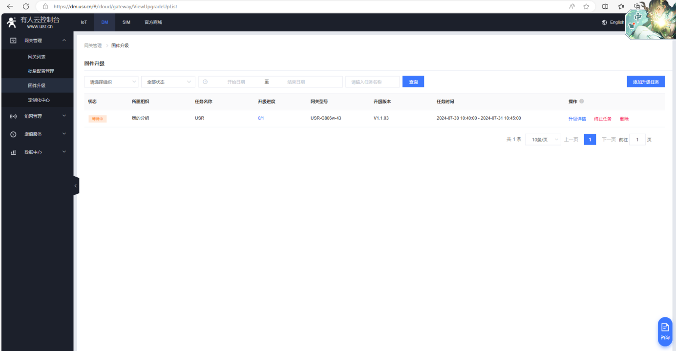 (2)固件升級(jí)中,狀態(tài)是等待中。