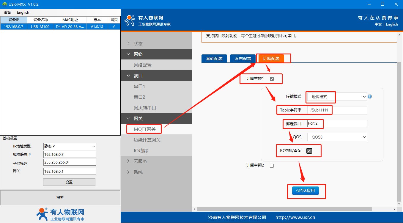 6>MQTT網(wǎng)關(guān)訂閱配置:因為要控制查詢IO,一定要勾選中《IO控制/查詢》