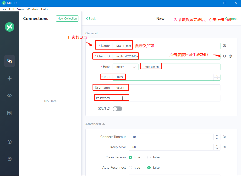 4. 設(shè)置MQTTX的參數(shù)