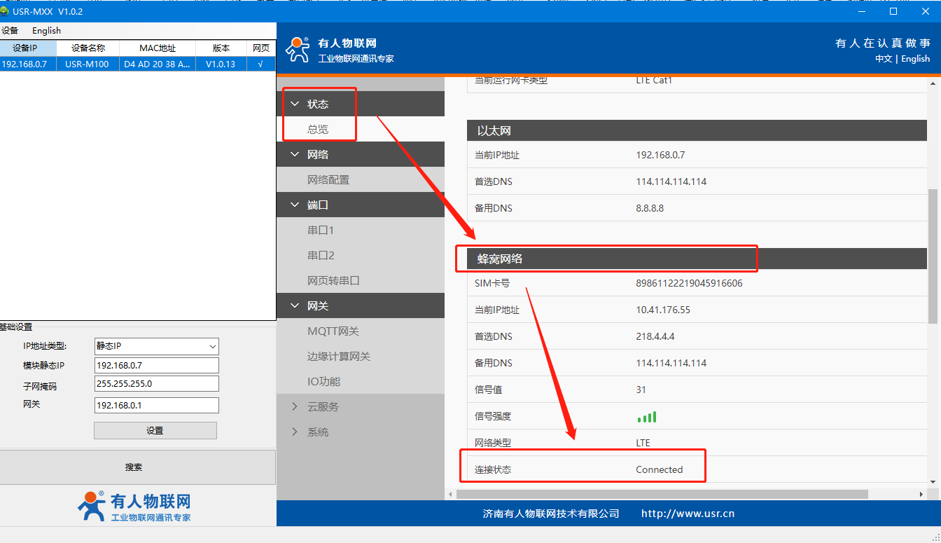 在 狀態(tài)--總覽--蜂窩網(wǎng)絡(luò)--連接狀態(tài),如果是connected狀態(tài),基本確定是聯(lián)網(wǎng)成功了;