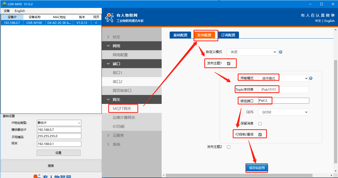 5>MQTT網(wǎng)關(guān)發(fā)布配置:因為要控制查詢IO,一定要勾選中《IO控制/查詢》