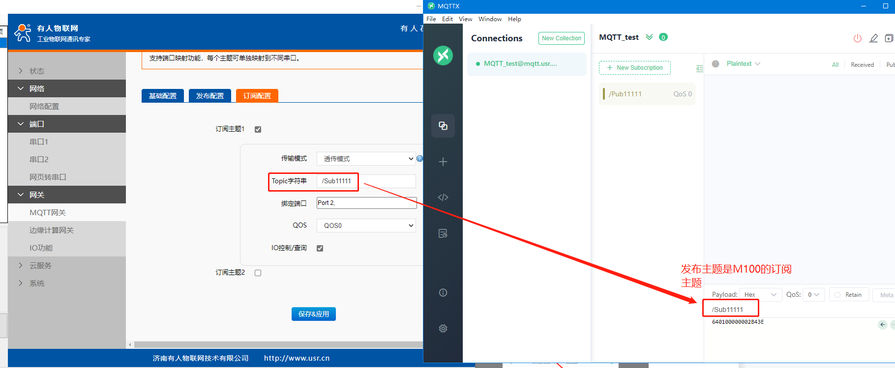 3>設(shè)置mqttfx發(fā)布主題:USR-M100的訂閱主題