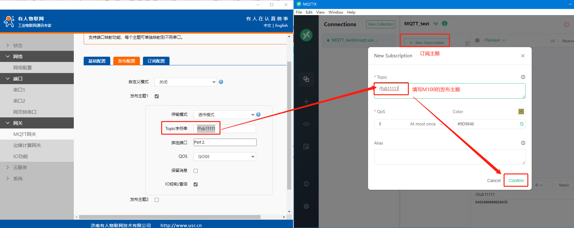 4>設(shè)置mqttfx訂閱主題:USR-M100的發(fā)布主題