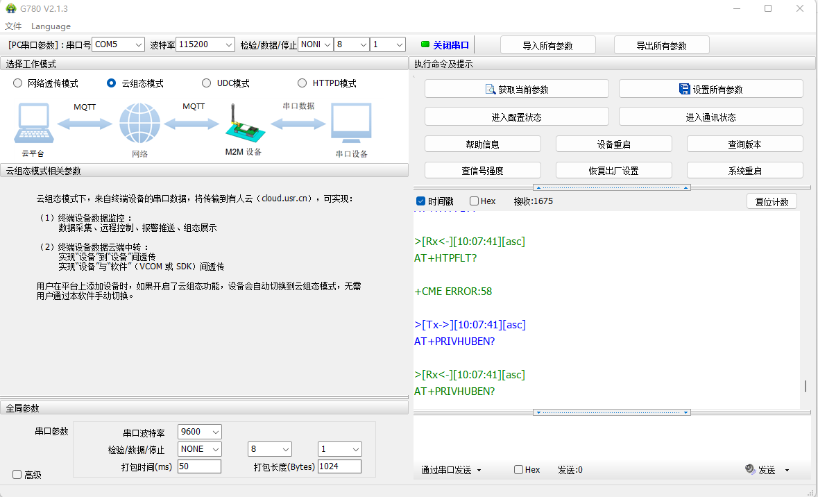 1. USR-780V2通過USB轉(zhuǎn)485轉(zhuǎn)化器接到電腦上,使用上位機(jī)軟件將波特率修改至9600,其他參數(shù)不變。