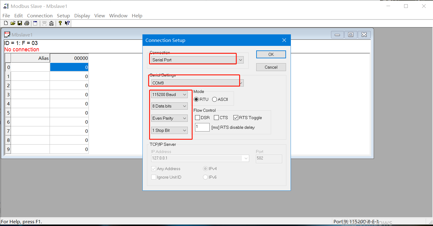 3、ModbusSlave參數(shù)設(shè)置: