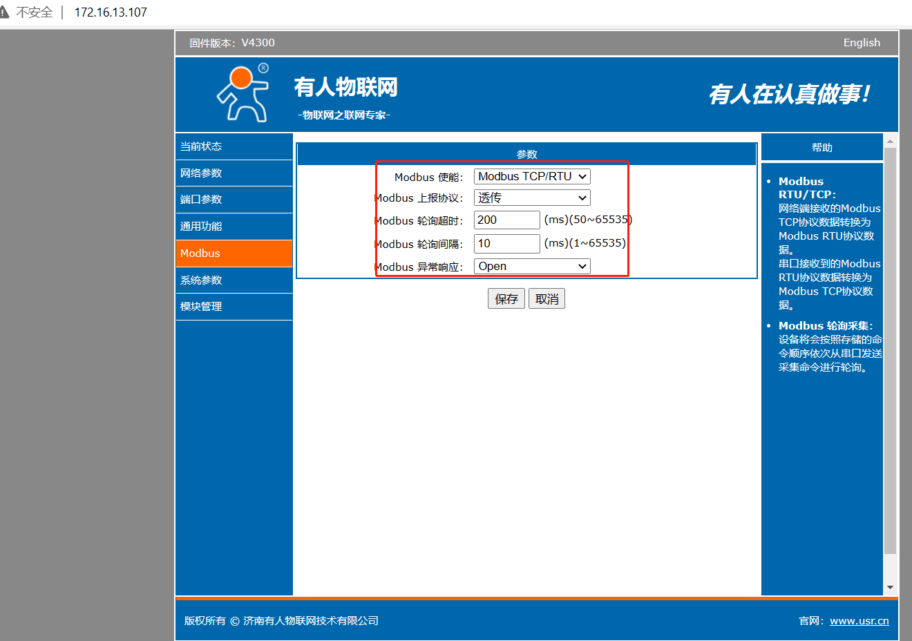 說明:Modbus 網(wǎng)關(guān)功能,僅在 USR-TCP232-30X 系列(國產(chǎn)芯片)產(chǎn)品具備。進(jìn)口芯片無此功能,請注意區(qū)分。