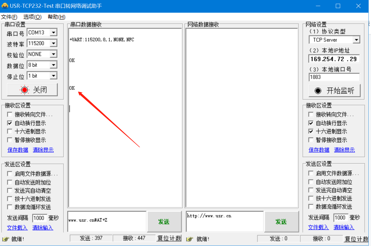 2. 使用設備重啟指令使剛才修改的波特率生效。(沒有這一條指令不會參數修改生效) m.0575400.com#AT+Z