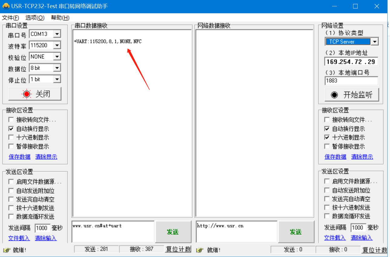例如查詢G781的串口參數:m.0575400.com#AT+UART,發送時使用enter換行之后再發送。