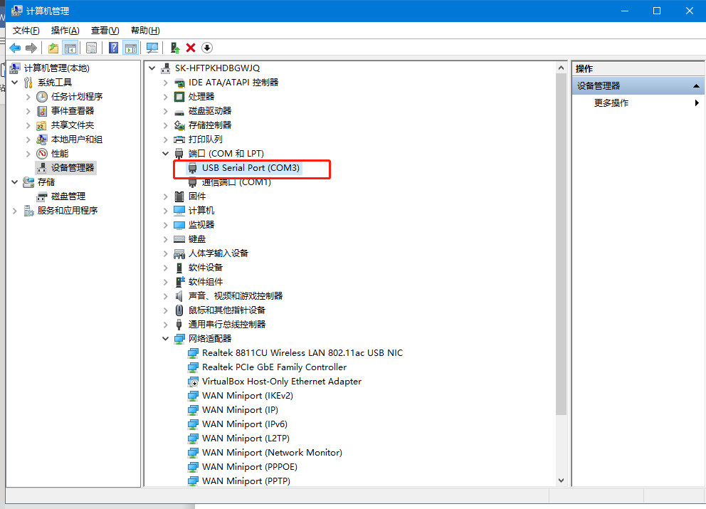 其中串口號可以在電腦的“設備管理器”中查看,見下圖;