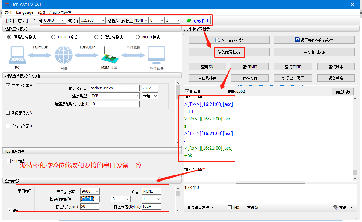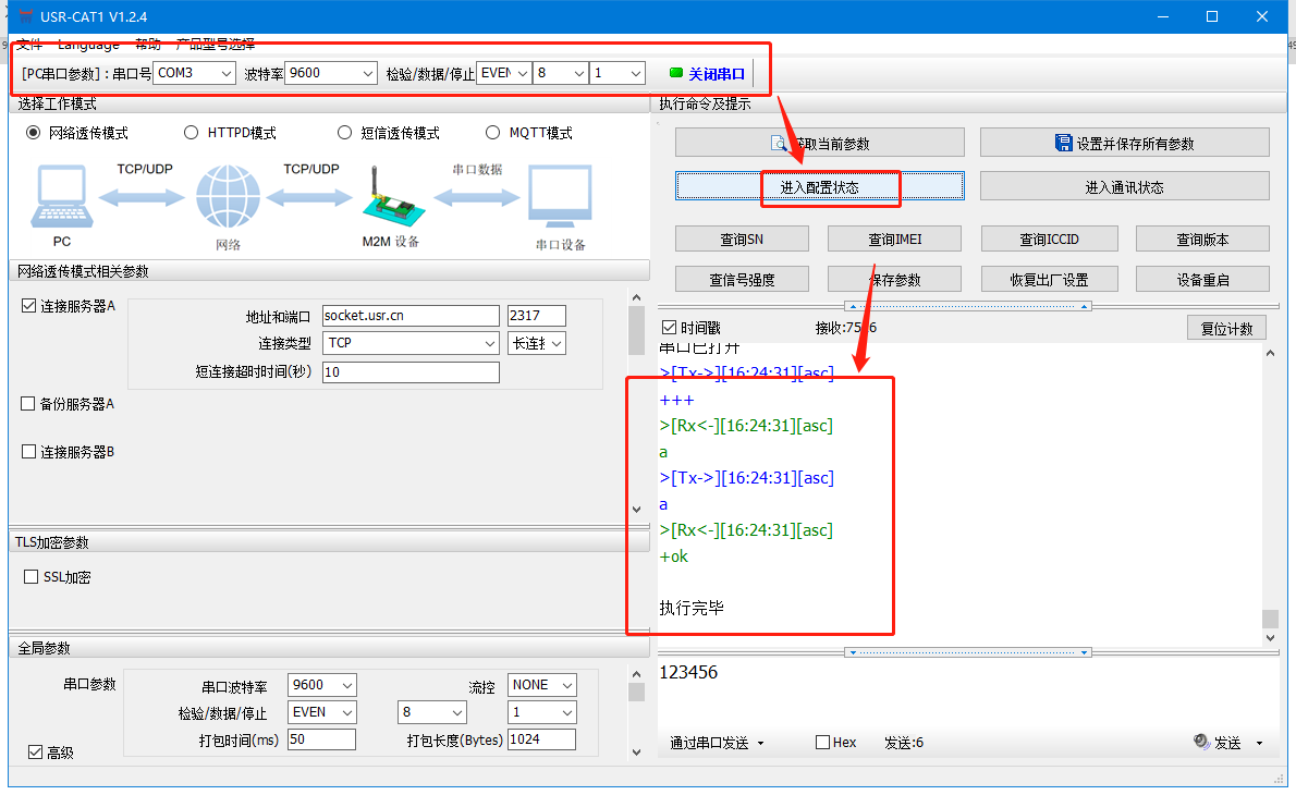 注意:點擊進入配置狀態,沒有收到+OK,只有3個+++