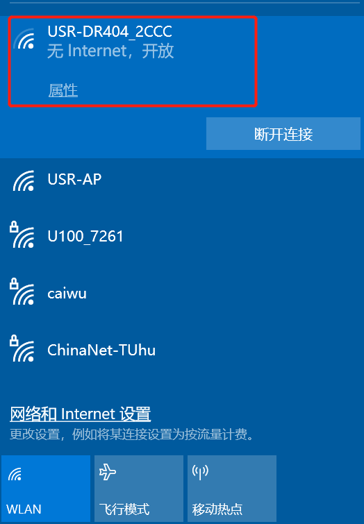 1.首先用485轉(zhuǎn)usb的串口線接到DR404的485和電腦usb上,電腦打開wifi網(wǎng)卡,搜索到USR-DR404的wifi后,點(diǎn)擊連接。