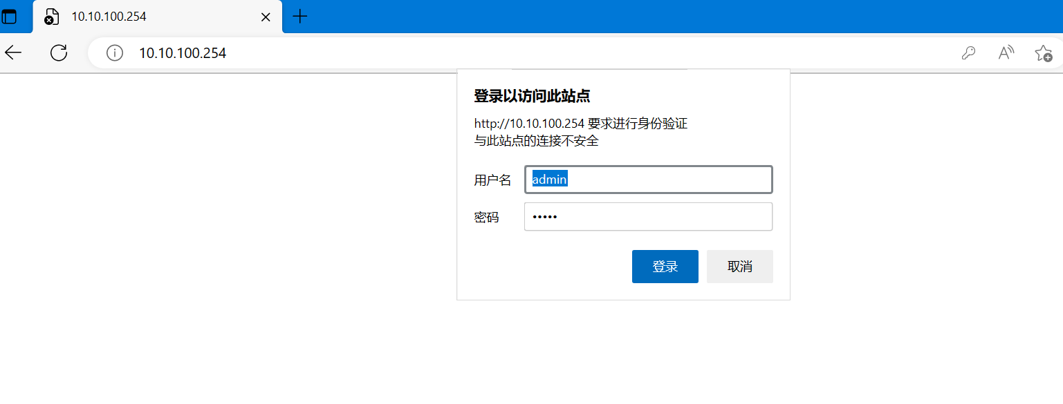 2. DR404的wifi連接成功后,瀏覽器輸入DR404的默認(rèn)ip地址:10.10.100.254進(jìn)入內(nèi)置網(wǎng)頁(進(jìn)不去內(nèi)置網(wǎng)頁:清除瀏覽器所有緩存,更換其他瀏覽器進(jìn)行嘗試),輸入網(wǎng)頁默認(rèn)用戶名和密碼:admin和admin