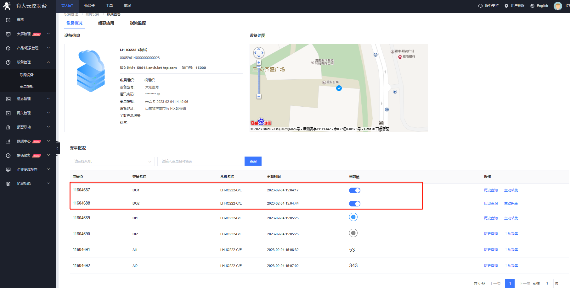 9. 關(guān)閉LH-IO軟件,有人云上打開(kāi)變量概況頁(yè)面,此時(shí),云端控制DO1吸合,DO1吸合5S后自動(dòng)斷開(kāi)。DO2會(huì)以提前設(shè)定的時(shí)間間隔不挺的循環(huán)開(kāi)閉。