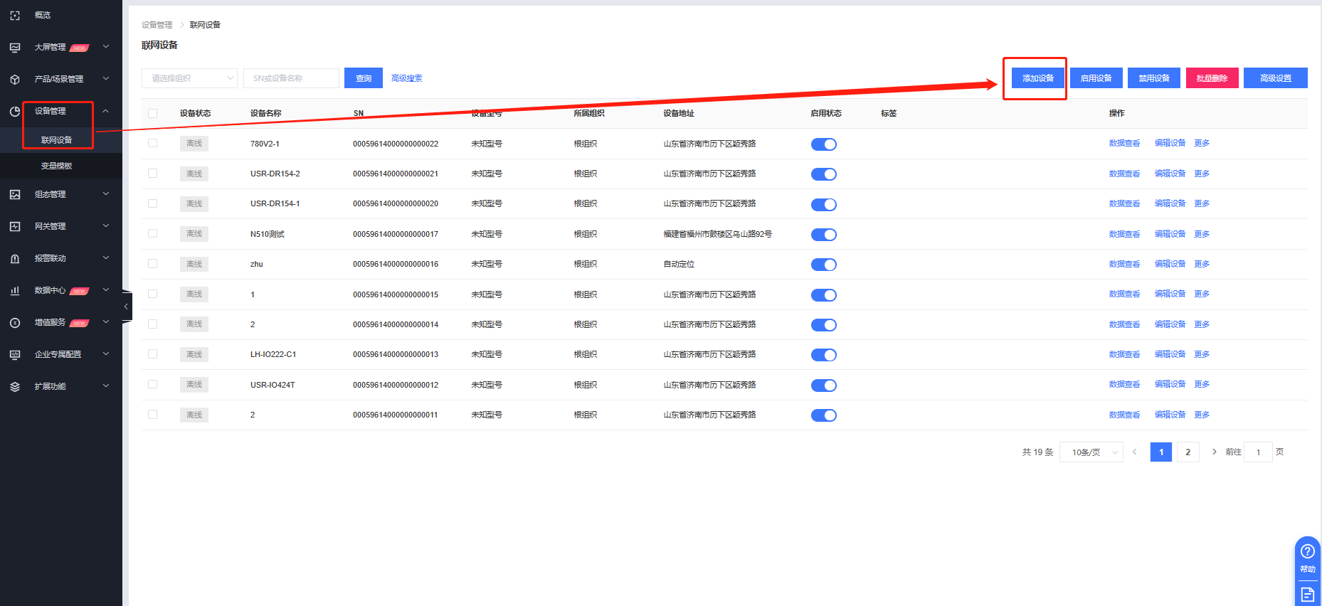 2. 設(shè)備管理—聯(lián)網(wǎng)設(shè)備—添加設(shè)備