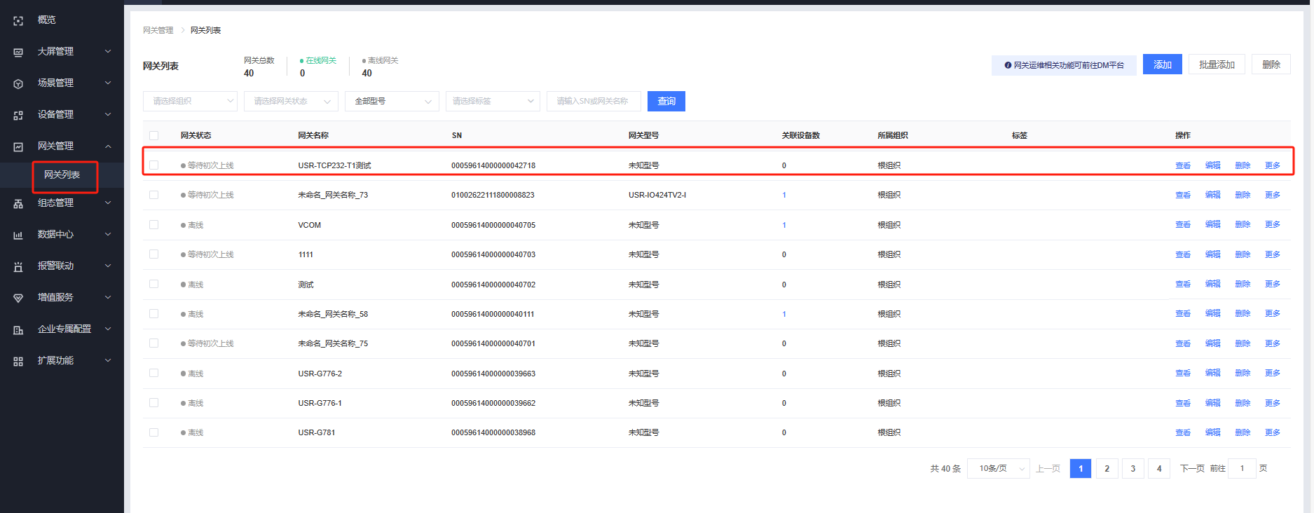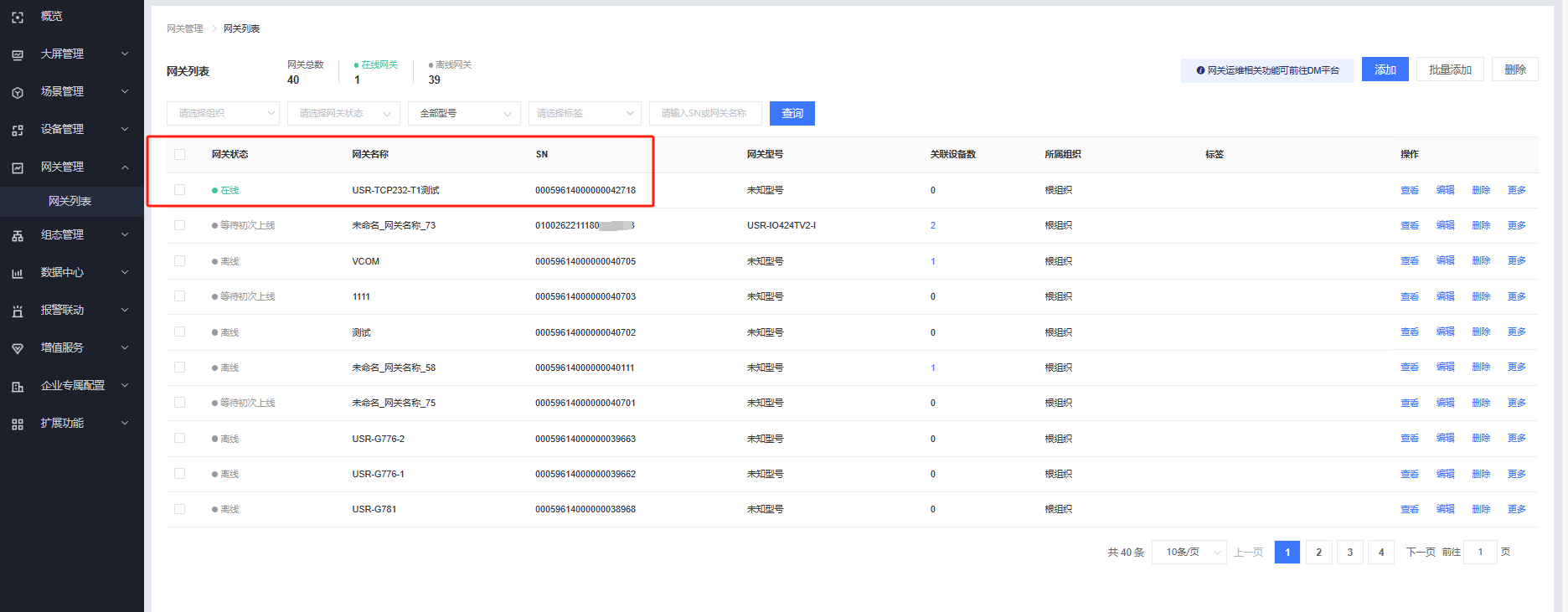 3.T1正常聯網,參數設置正確,此時可以看到有人云設備已經上線