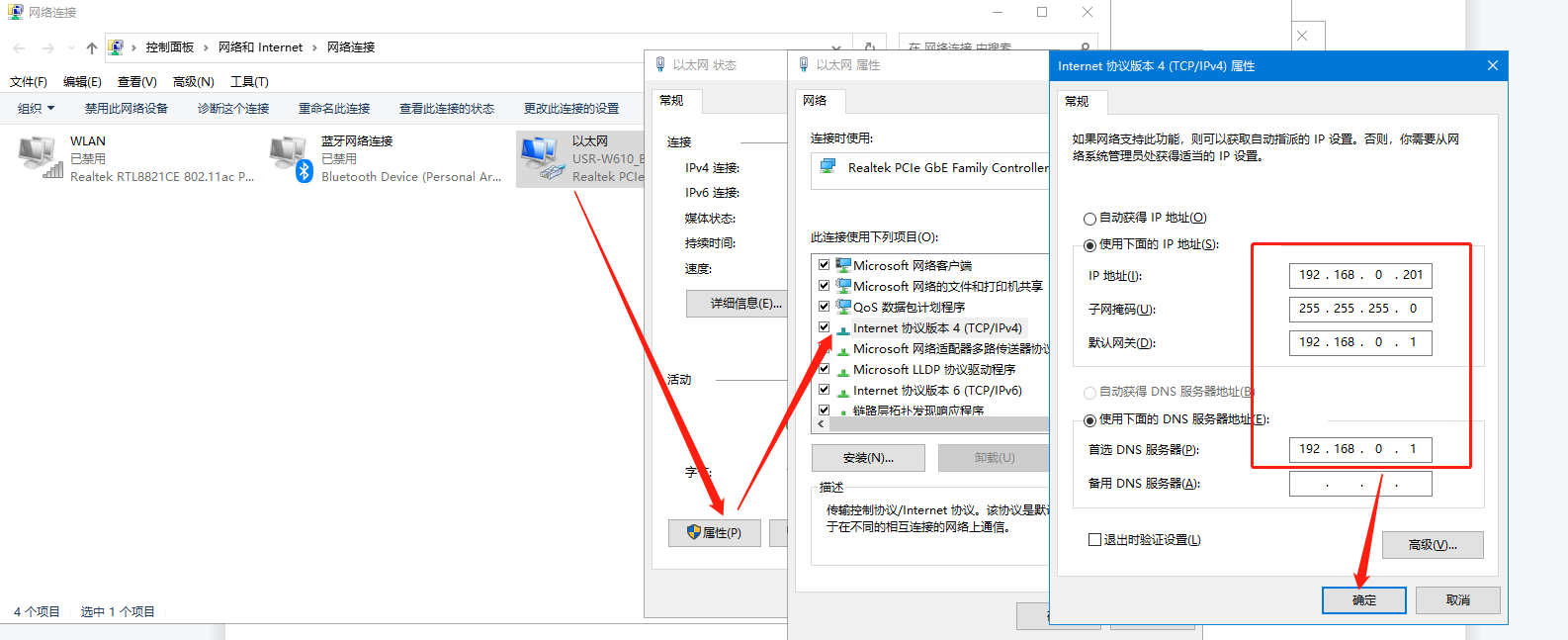 1.T1和電腦網口通過網線直連,電腦設置成靜態IP和T1同網段,T1默認靜態IP:192.168.0.7