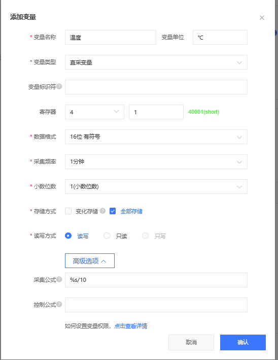 協議選擇通用Modbus/PLC/DL / Modbus / Modbus RTU,點擊添加變量