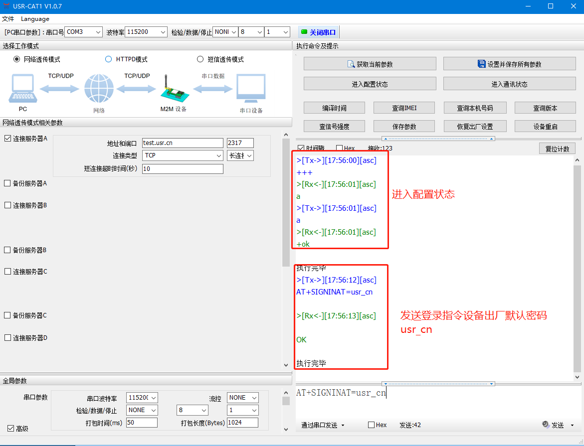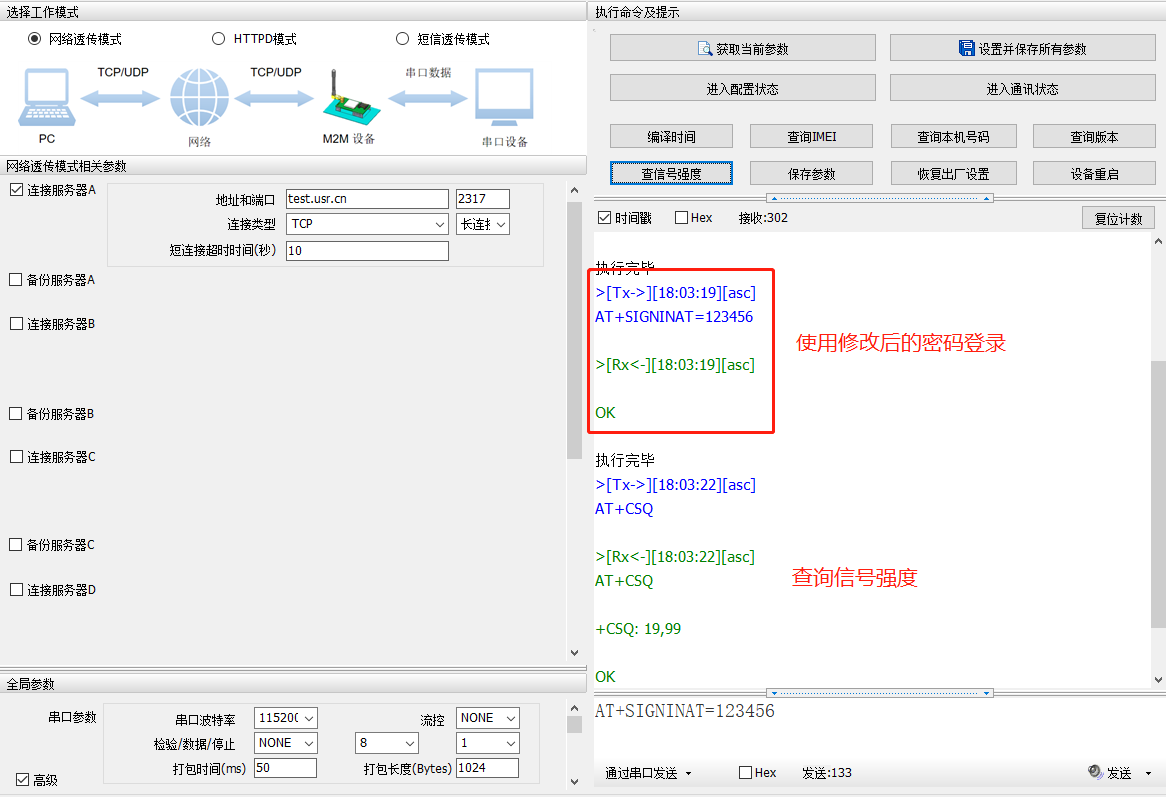登錄指令 AT+SIGNINAT=usr_cn