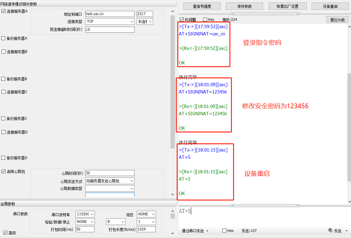 發送保存指令,發送之后模塊會自動保存和重啟 AT+S