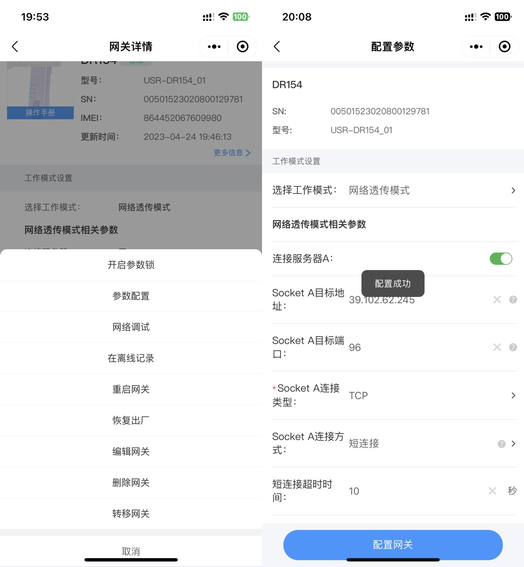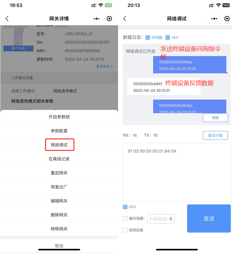 2、確認是打開串口--進入配置狀態(tài)下設(shè)置的參數(shù),不在配置狀態(tài)下填寫的參數(shù)不生效,如無法進入配置狀態(tài)個根據(jù)附件二排查