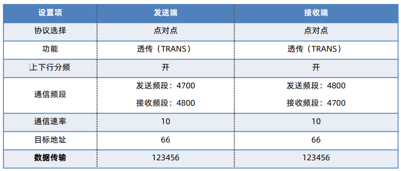 設備收發數據可使用不同頻段,模組接收到串口數據后以發送頻段進行數據發送,發送完成之后會立即切換到接收頻段進行數據接收。