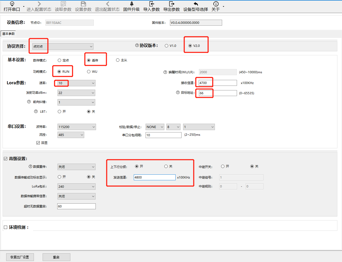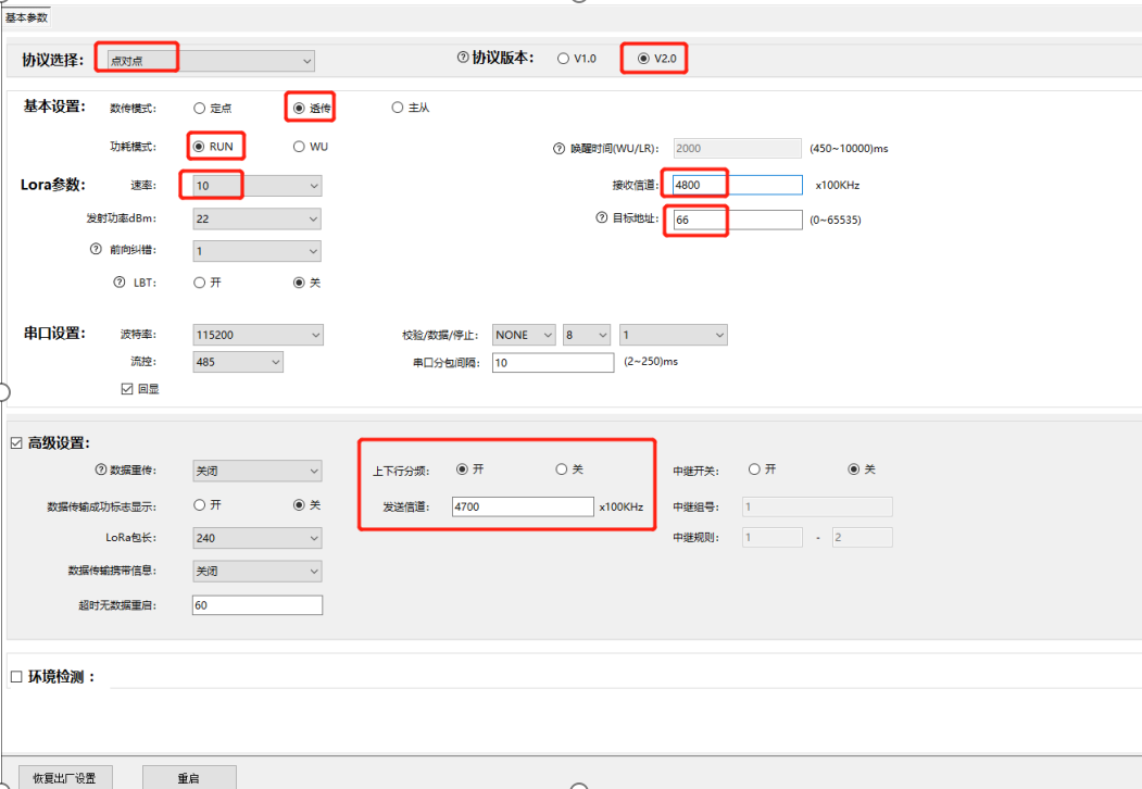 3)按照圖中的標注,設置一下收發分頻傳輸的參數。
