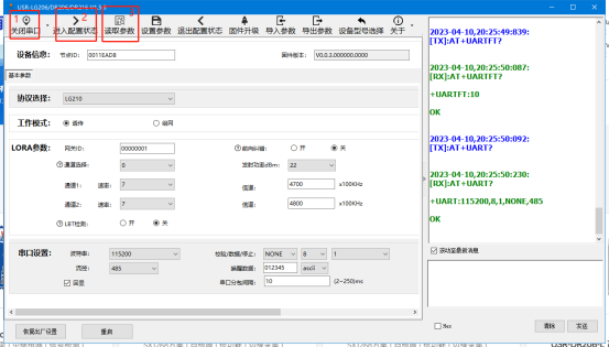 串口設(shè)置默認(rèn),最后點(diǎn)擊設(shè)置參數(shù)。并且退出配置狀態(tài)。