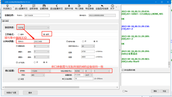工作模式:指定節(jié)點(diǎn) 通訊參數(shù):攜帶ID