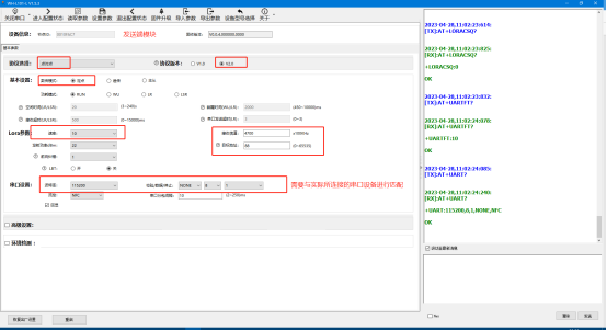 4、模塊的串口參數要和串口調試助手打開串口參數一致,包括波特率、數據位、停止位、校驗位