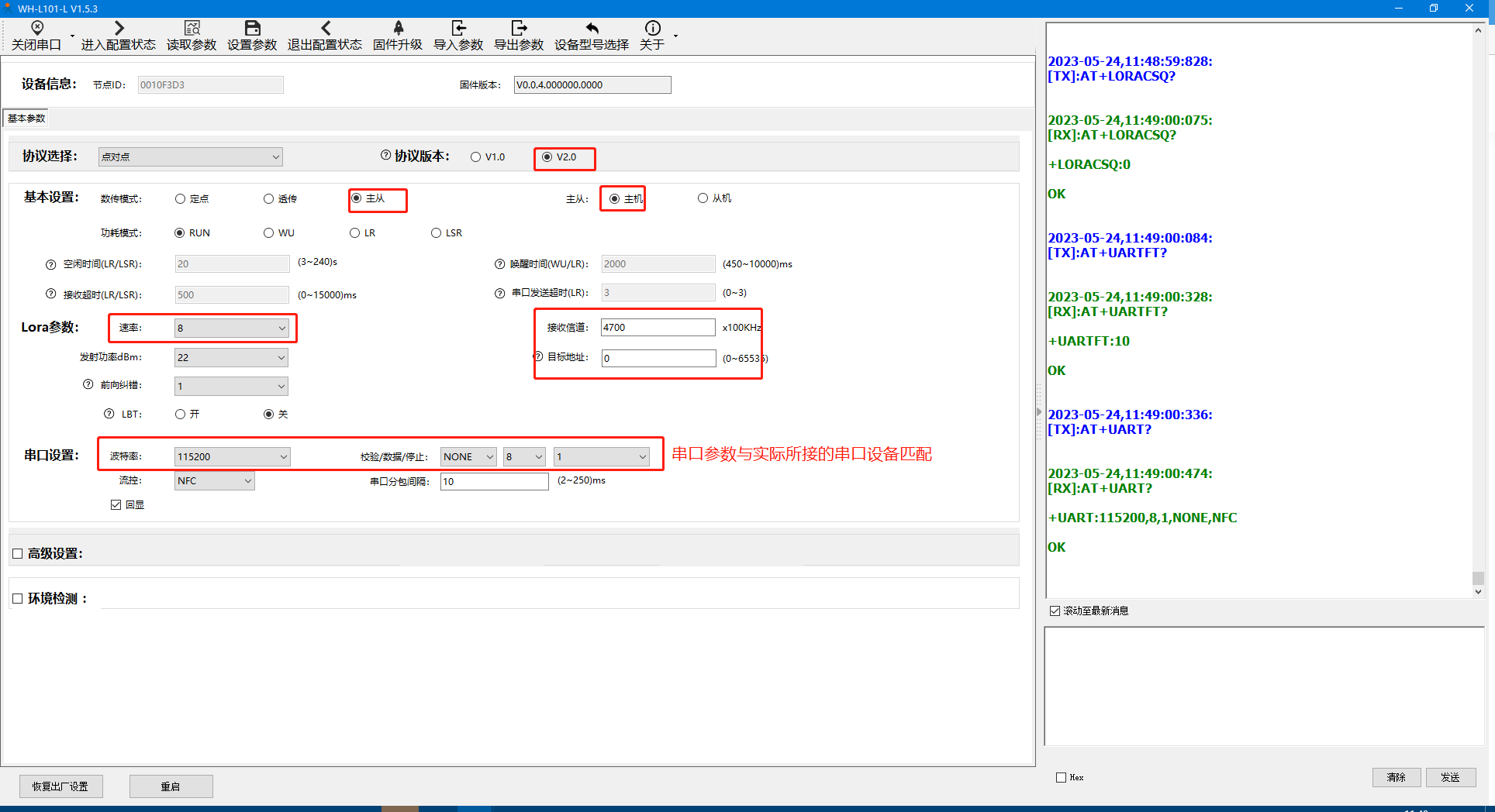 4、模塊的串口參數要和串口調試助手打開串口參數一致,包括波特率、數據位、停止位、校驗位