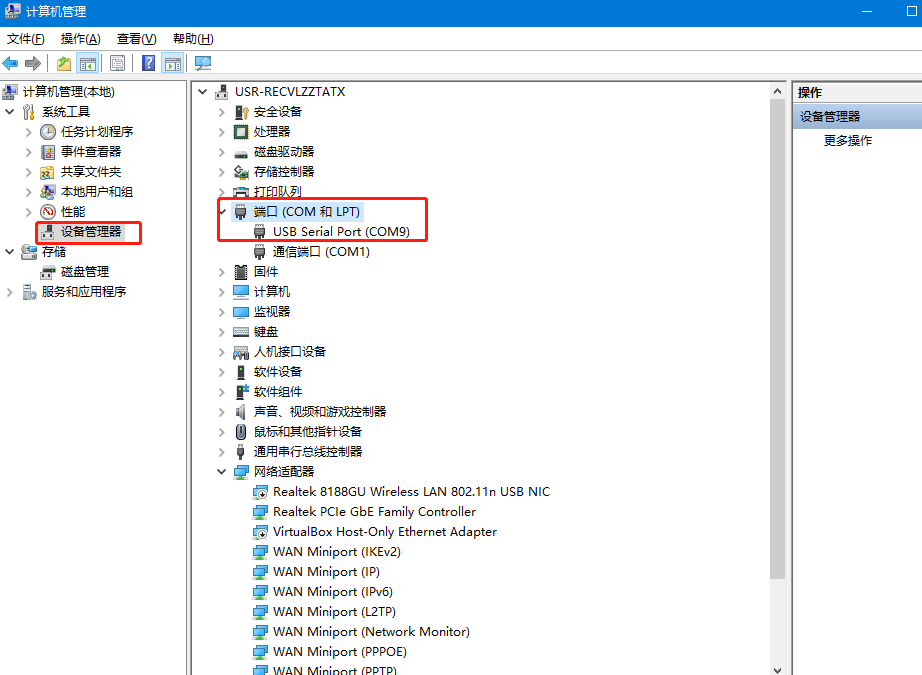 1、使用USB轉232的串口線接電腦,電腦可以識別到COM口。