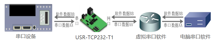 通過使用配套軟件 VCOM(虛擬串口),接收指定虛擬串口的數據,然后把該數據以網絡數據的形式發送出去,從而解決 PC 端軟件為 串口方式而無法和聯網設備通訊的問題,方便用戶使用。
