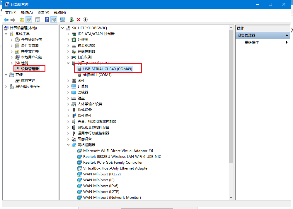 (2)檢查USR-RS485串口線的COM口號,點擊電腦計算機,右擊鼠標,點擊設備管理器,查看端口,確認USB-RS485串口線的端口,有人測試電腦是COM,按照M100串口1默認串口參數波特率115200,數據位8位,停止位1位,校驗位無,使用串口助手打開對應的串口。COM49