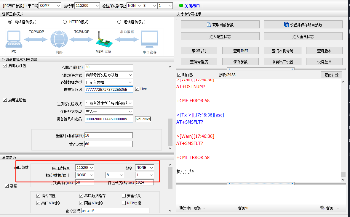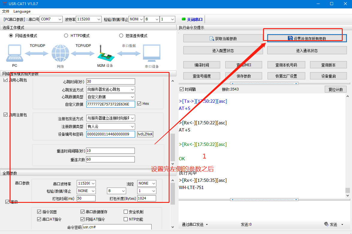 配置7s1全局參數的串口參數 波特率數據位校驗位停止位和傳感器的串口參數保持一致。本案例以默認為主。