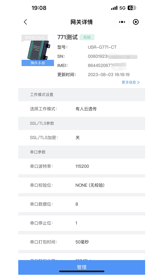 終端串口設備(比如:傳感器)--G771--有人云平臺---G771---上位機