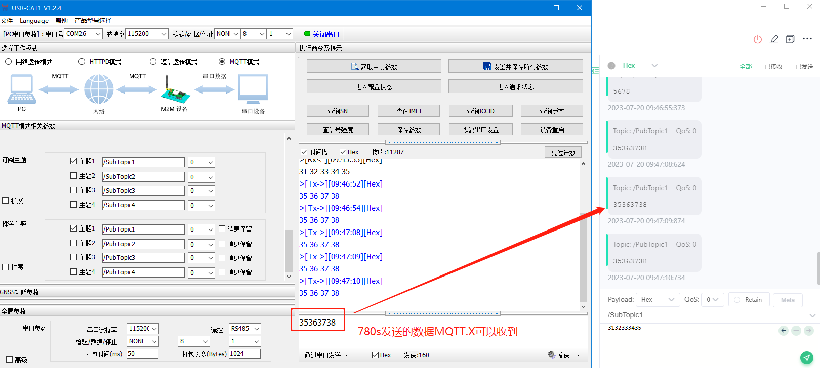 5.USR-G780s MQTT的訂閱主題模式支持純透傳訂閱模式(訂閱主題數據向串口透傳)和攜帶主題訂閱模式(訂閱主題數據攜帶主題向串口透傳)。