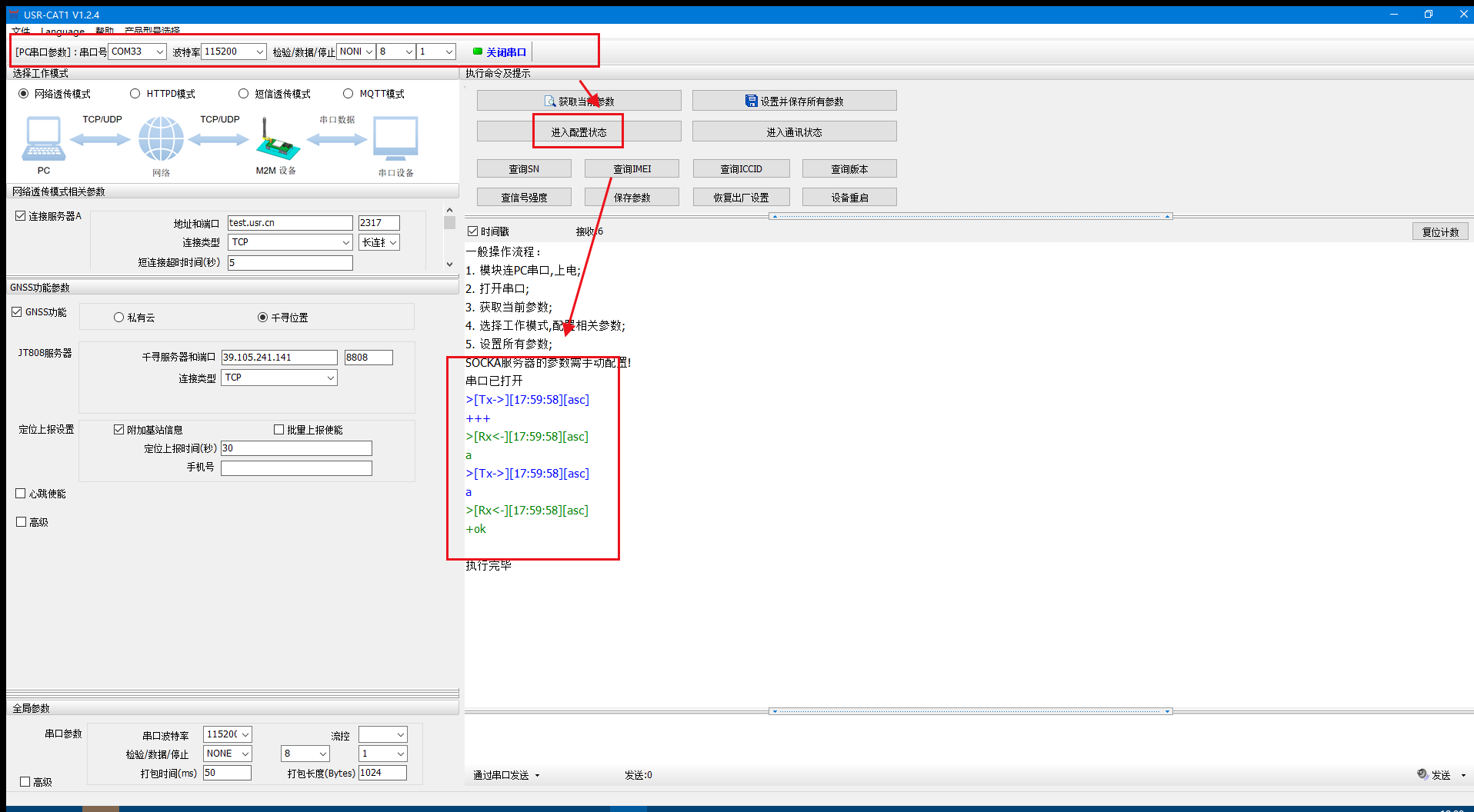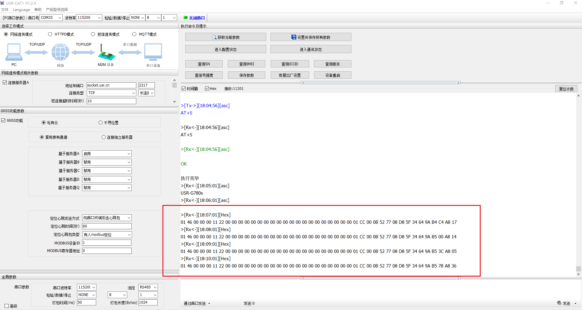 USR-G780S GNSS定位數據通過串口輸出設置步驟