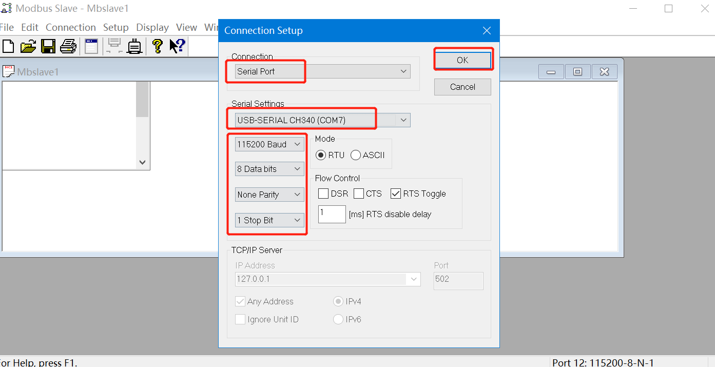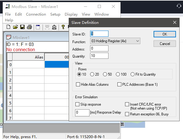 說明:本案例中,串口設備用電腦端的modbus slave軟件模擬來測試
