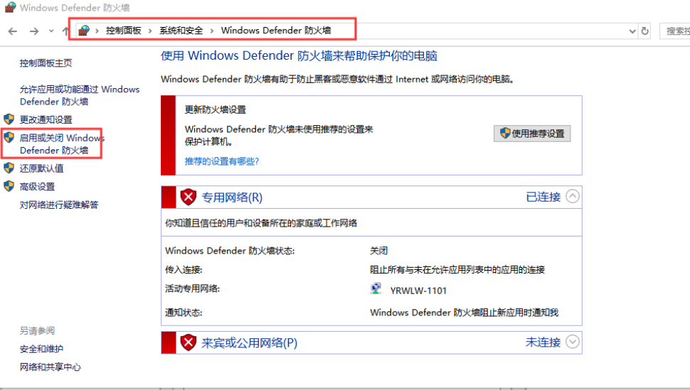 1、按路徑:控制面板---網絡和Internet--網絡和共享中心找到“windows防火墻”和“更改適配器設置”選項,關閉防火墻并禁用與本次測試無關的網卡,并關閉電腦殺毒軟件。