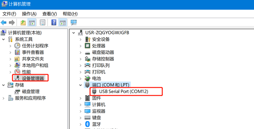 4、E2模塊接在EVK評估板上,串口接232轉usb到電腦,在電腦設備管理器上生成一個com12.