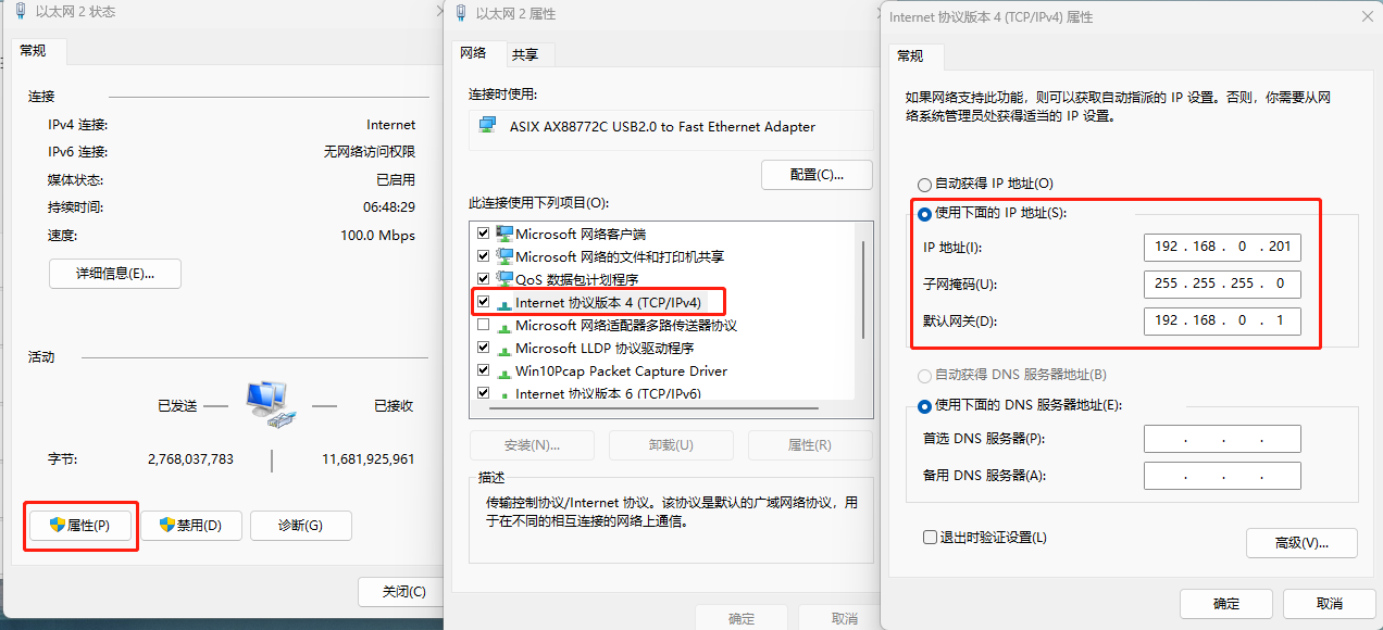 (3)電腦:控制面板--網(wǎng)絡(luò)和 Internet--網(wǎng)絡(luò)連接,IP設(shè)置和M100 IP同網(wǎng)段,M100默認IP是192.168.0.7,網(wǎng)關(guān)192.168.0.1,將電腦本地連接IPv4設(shè)置靜態(tài)IP,192.168.0.201,子網(wǎng)掩碼255.255.255.0,網(wǎng)關(guān)192.168.0.1。