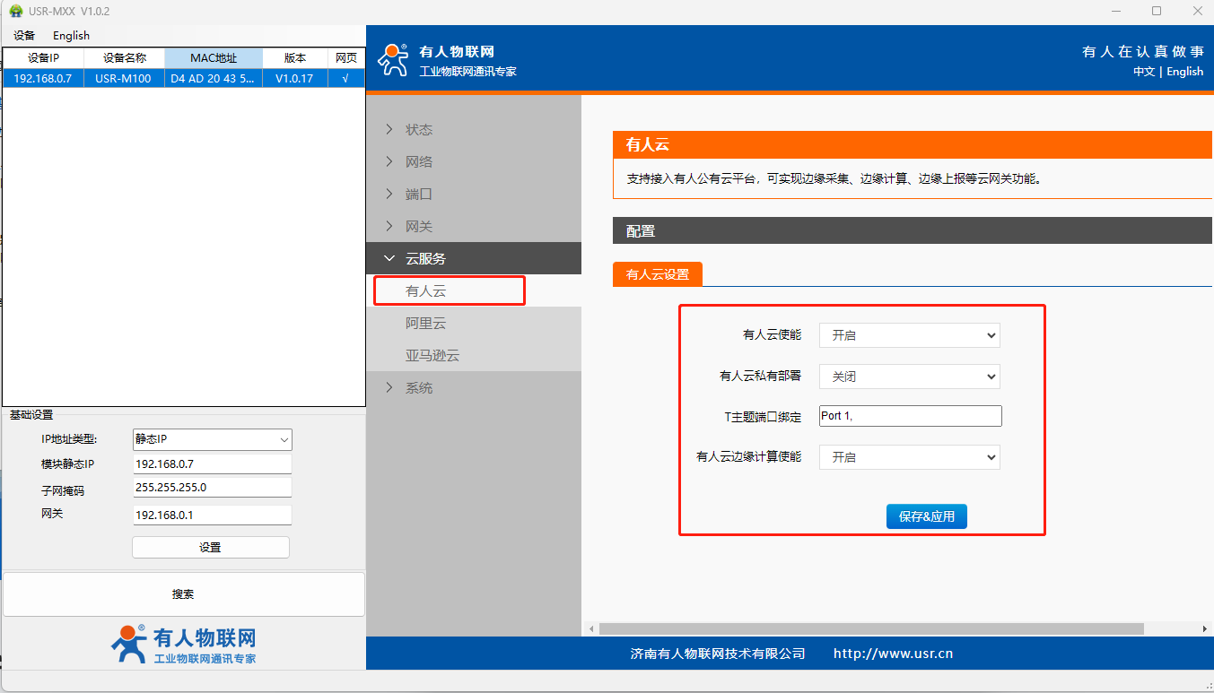 T主題端口綁定:對應(yīng)的是M100的兩個485串口,我們使用端口1,勾選對應(yīng)的port1。