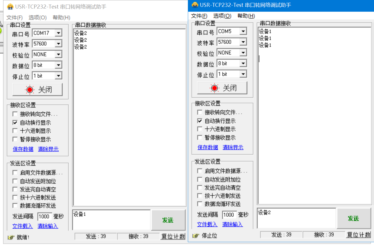 2.兩個W610串口互發數據