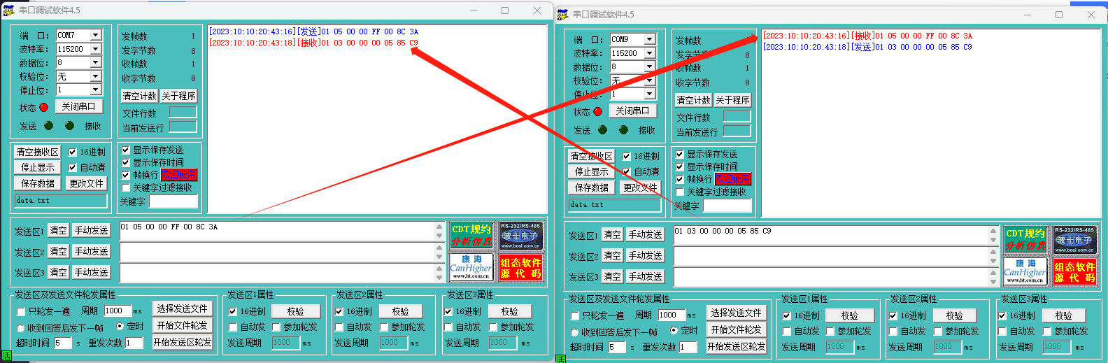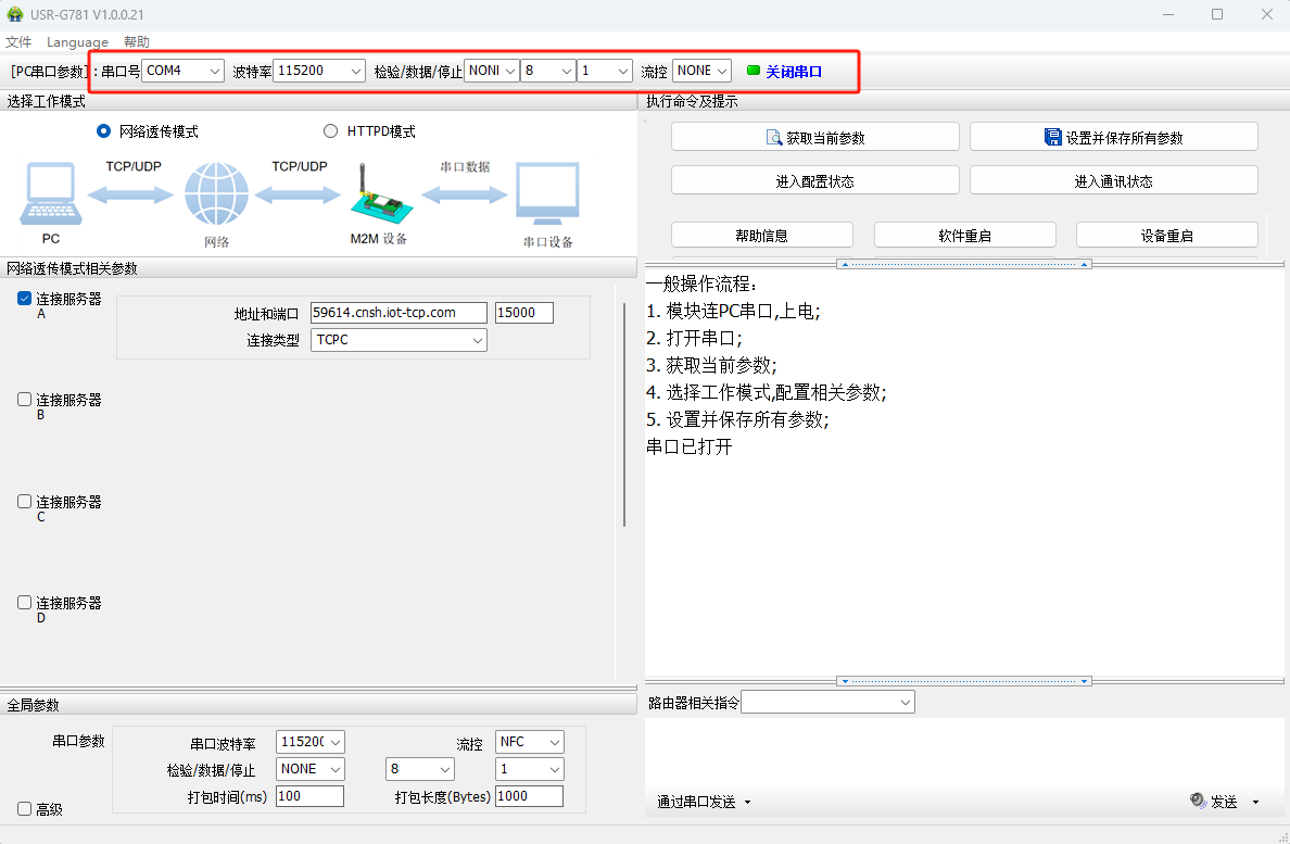 設備出廠默認波特率115200 NONE 8 1打開串口