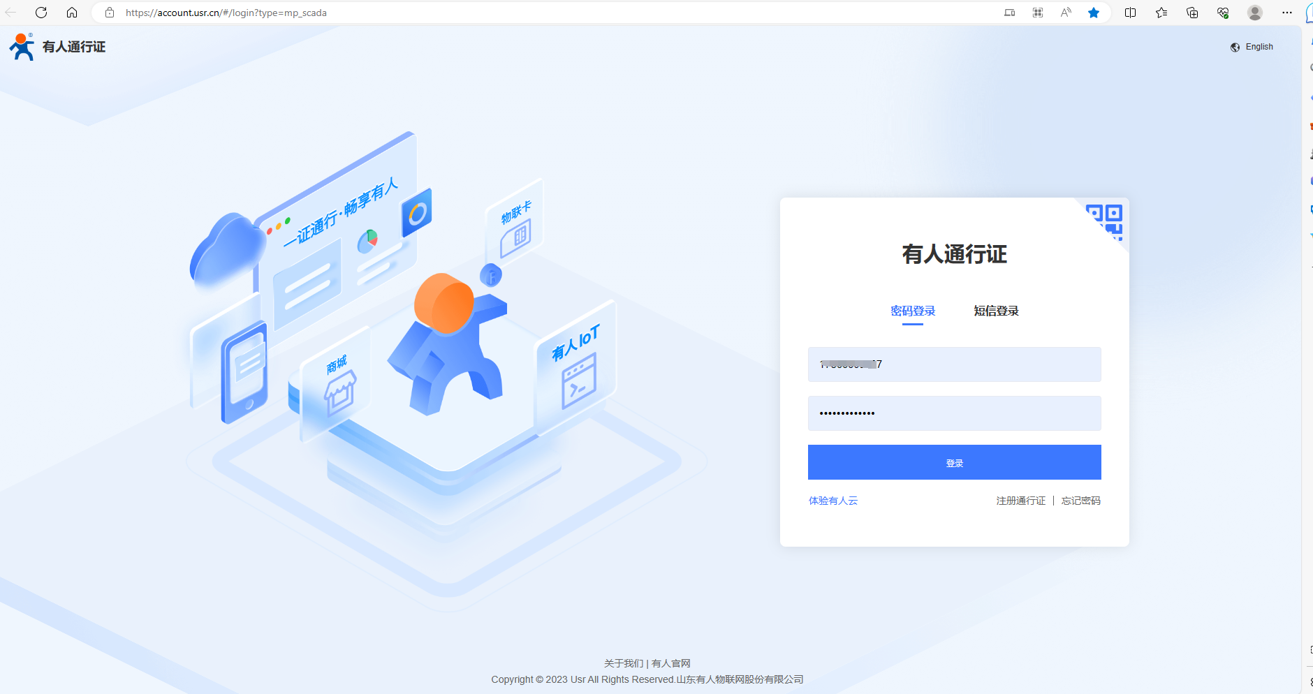 1.登錄有人云:https://account.usr.cn/#/login?type=mp_scada