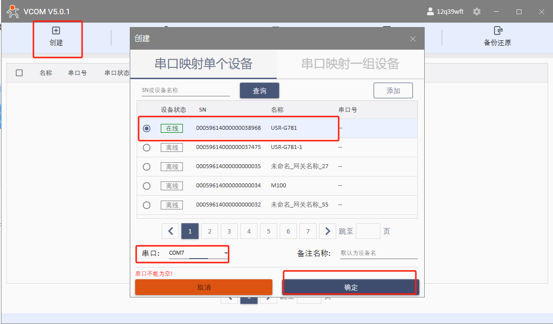 使用USB轉485轉換器接到電腦上,打開USR-G781配置軟件,從設備管理器中查看當前COM口4,軟件選擇COM4